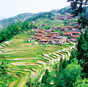 畲族主要聚居在浙江省和福建省山区的丘陵、山谷盆地。浙江景宁是我国唯一的畲族自治县。畲族聚居的村寨都在离县城不远的大山里,大都选择避风向阳、有水源的地方建房成村。在村寨四周栽种松树、枫树、榅树、苦槠,房前屋后种毛竹、果树。村口有树能挡风,屋后种树能蓄水,空气也格外新鲜,因此,便有了“造成风水画成龙”的畲族谚语。