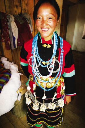穿上珞巴族妇女传统服饰的群宗喜上眉梢