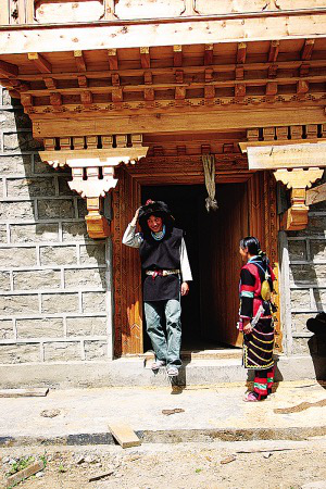 2006年,当我再次出现在珞巴族小伙儿达瓦面前时,他简直无法相信眼前的事实,只是站在一步之遥的地方,默默地朝我笑着,笑容略带羞涩。我问:“还记得我吗?”他点点头说:“你真的来了。”然后接着说:“我们一起去看群宗(达瓦的妻子)吧!”于是,我跟着达瓦走进了密林深处的西藏自治区林芝地区米林县南伊珞巴族民族乡的琼林村。