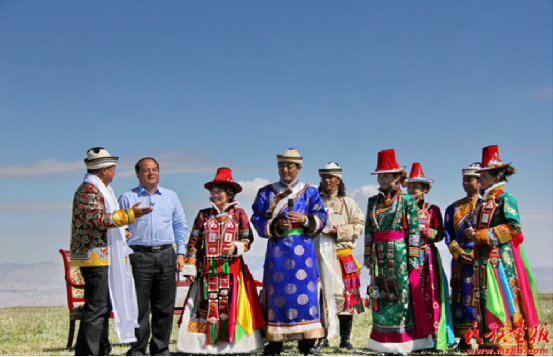 CCTV7《乡约》栏目录制现场。向全国观众介绍肃南县及裕固族文化。央金摄 引自民族画报