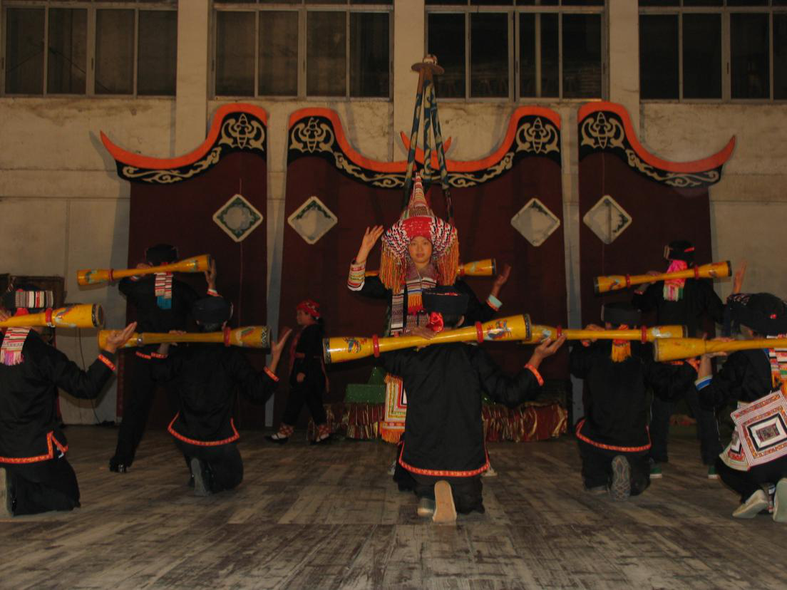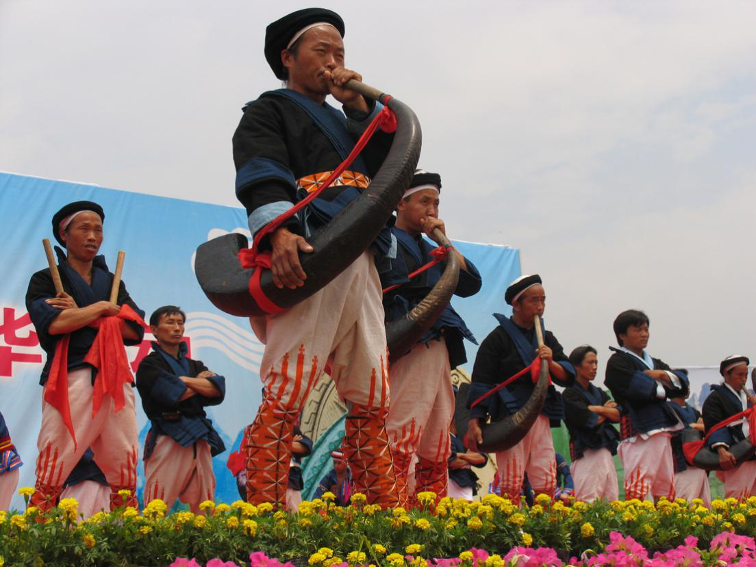 瑶族人民在节日庆典活动上用民族乐器演出(刘军摄)