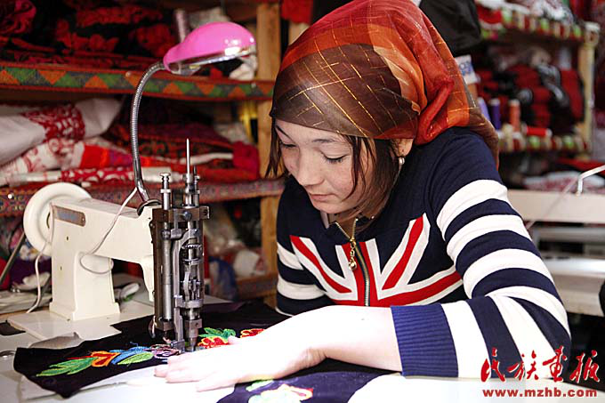 克孜勒陶乡妇女手工艺刺绣合作社。手工刺绣业成为克孜勒陶乡农牧民增收的一个渠道