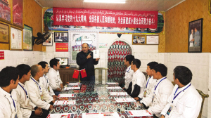 工作组工作人员向新疆籍务工人员宣讲党的十九大精神。 陈金桥摄