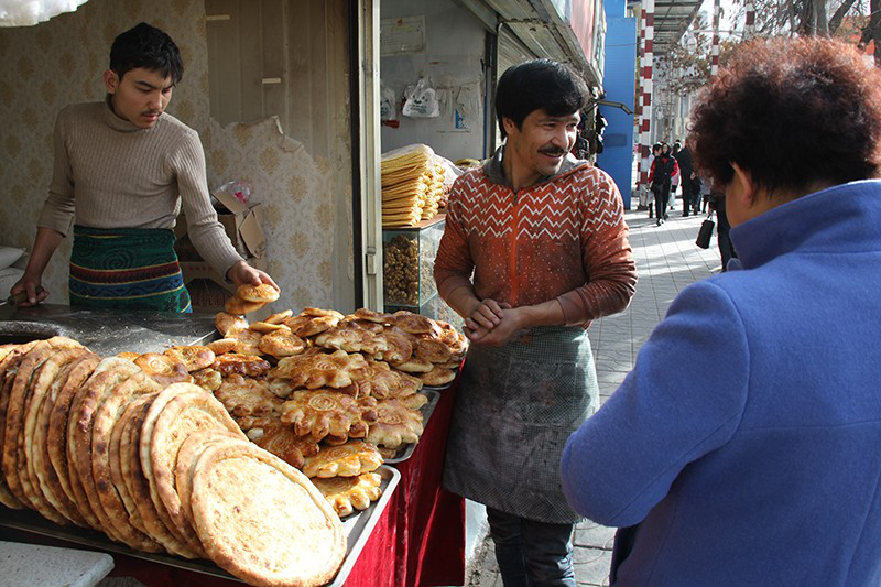 他的话里有着对这座城市的感情。虽然工作很累,但他们有很多朋友。“这里有很多上大学的维吾尔族大学生,还有在这里做小生意的人,也有回族和汉族朋友。”买麦提·沙乌提和阿吉拇提都没有结婚,但他们都打算把未来的妻子带到这里,像他们的老板一样,在这座城市安家。买麦提·沙乌提没有去过其他大城市,但他有一个理想:结婚时,带着妻子到上海、广州、北京等大城市走一圈。再干一年,他准备自己开个店当老板。