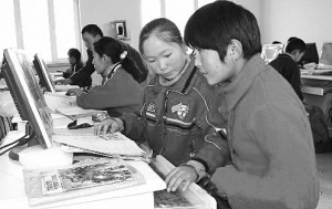 在新疆奇台县大泉塔塔尔乡的华恩爱心小学,哈萨克族女童在学习使用电脑。资料图片