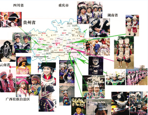 正所谓“一山分四季,十里不同俗。”在苗族内部群体中,“盛饰”亦有着明显的区域性特征,其风格的形成与所在地域的自然环境,以及共同生活的民族都有着密切联系。