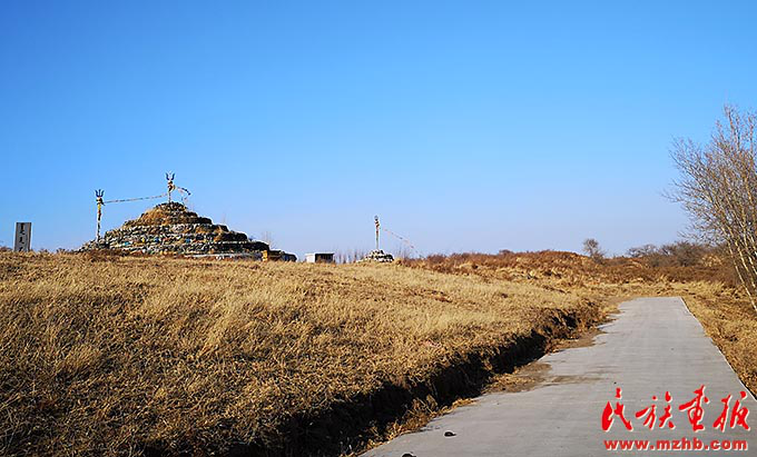 内蒙古通辽市科尔沁左翼中旗白音塔拉农场蒙古族特色浓郁,远处一座新垒起的敖包承载着当地农牧民的心灵寄托和新年期望