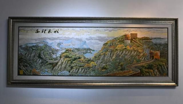 《万里长城》是金文集数年之功完成的云锦巨制。观者立于高山之巅,长城从峰峦叠嶂间伸向远方,更有一旁朝霞相伴,使画面错落有致,层次丰富。
