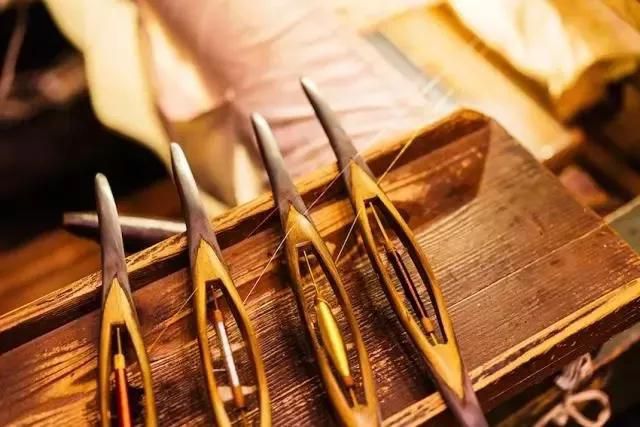 云锦工艺独特,用老式的提花木机织造,必须由提花工和织造工两人配合完成,两个人一天只能生产五到六厘米,这种工艺至今仍无法用机器替代。