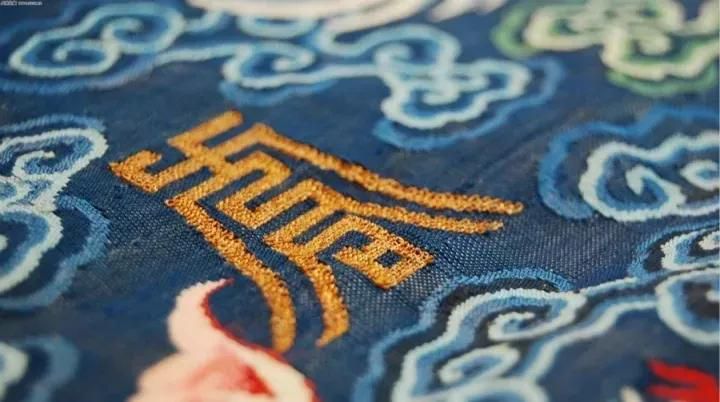 采用高档的龙袍制作工艺,特大团龙妆花圆光嵌入云龙暗花地纹中,使整体更显金碧辉煌,层次分明。该作品是中国国家博物馆收藏的第一件当代云锦精品。