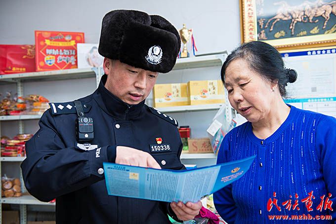 敖日奇朗(左)向边境地区群众宣传法律法规。