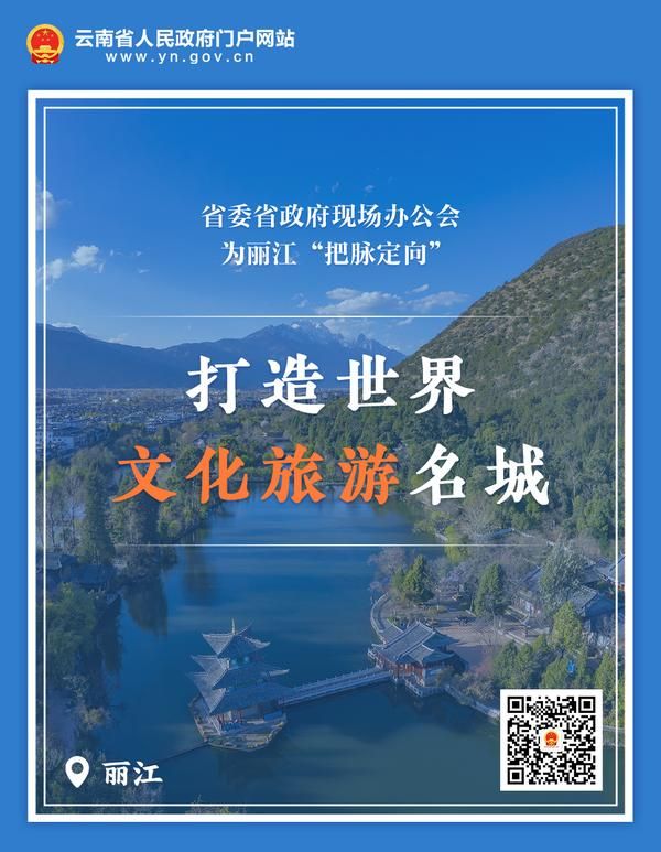 6月18日,省委、省政府召开丽江现场办公会,对丽江未来发展的目标路径和重大问题深入研究分析,明确要求丽江努力建设成为世界文化旅游名城、乡村振兴示范区、长江上游重要生态安全屏障。