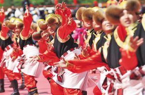 锅庄舞、弦子舞、热巴舞等是流行于藏族聚居区的民间舞蹈类型。图为西藏群众在跳传统舞蹈。新华社记者 晋美多吉摄