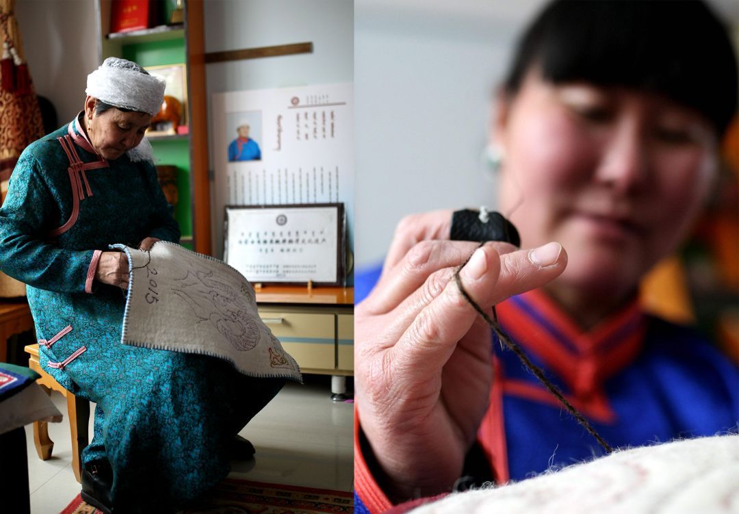 2014年,“毡绣技艺”成功入选了第四批国家级非物质文化遗产代表性项目名录,而如今,古老的苏尼特毡绣技艺再一次开始风靡一时,延伸到了抱枕、沙发垫、手机套、电脑电视机盖布、包包、笔筒上等一系列现在产品上。