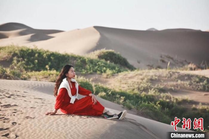 图为玛尔健坐在甘肃肃南县的沙漠一隅,回忆过去,感受家乡多年来的变化。(资料图) 玛尔健供图
