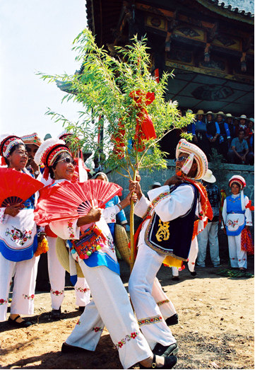 “绕三灵”是云南大理洱海西部白族乡村的一种游春歌舞节会,它既包含着对神灵的朝拜,又充满着以男女情爱为主要内容的纵情歌舞,是一种极其古老的民俗活动。白语称为“拐上哪”,“拐”是游逛的意思,“上哪”为古白语表述情爱活动场所的专有名词,现代语言中没有准确的对应词汇,故有人将之汉译为“绕山林”或“绕桑林”,其实该活动与山林、桑林都没有直接关系,而从其游逛活动必经的“佛都”、“神都”、“仙都”三大寺庙,译作“绕三灵”较为符合此项活动的实际。