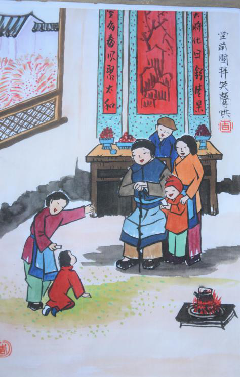 而张旭东的年味,则更加具象。绘画是具象的艺术,张旭东的画是为过年而绘,为金华古镇家家户户的年味而绘。