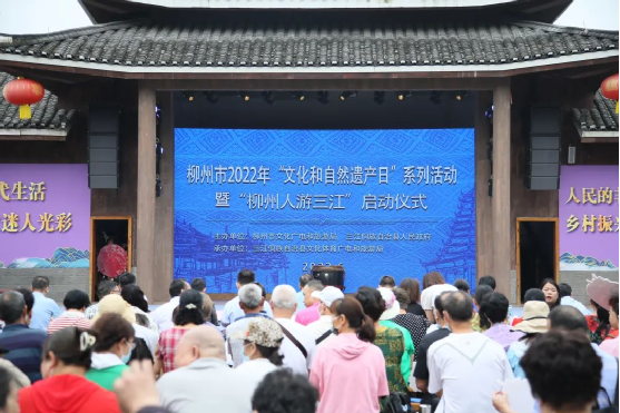 6月11日,广西三江县月也侗寨一早就芦笙吹奏,琵琶弹唱,人头攒动,热闹非凡。今天是以“连接现代生活 绽放迷人光彩”为主题的2022年柳州市“文化和自然遗产日”启动仪式暨“柳州人游三江”启动仪式。
