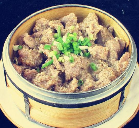 粉蒸肉以肉为主料,采用米粉和其他调味料制作而成。粉蒸肉糯而清香,酥而爽口,有牛肉、排骨、猪舌、牛肚、肥肠、羊肉等不同选择,味道也根据个人喜好在辣椒碟中添加醋、糖、麻油等调味料,粉蒸肉味道鲜美、口感松软、回味无穷。