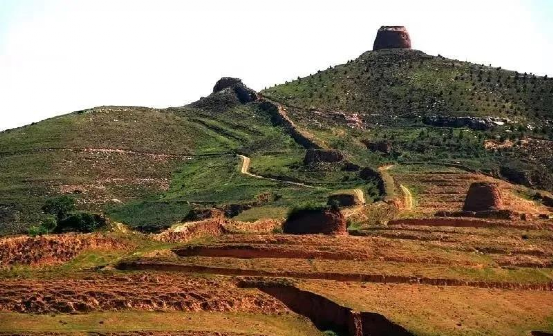 小元岇长城比北堡川高200∽300米,山川之间是为宽缓慢坡,今可驱车直达长城顶上。这对于当年善于驰骋野战的胡骑形不成特别的阻碍,因此这里的长城防御布置的相当密集。站在海拔1650米高的马头山墩台远眺,长城墙体纵横交错曲折环互,蜿蜒于山脊,迷离若龙蛇横卧。烽堠墩台林立,密密如点棋局,洒铺于群山之间。马头山墩台坐落于最高峰,脚下群山连绵,长城墩台尽收眼底。长城内侧有一民堡,因靠近小元峁村称小元岇堡,此堡应为文献所载好汉山堡,由兵使卢友竹筑于崇祯五年,是为加强视远隘口而筑的防御军堡。