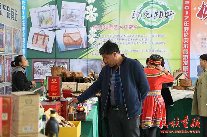 呼伦贝尔市旅游发展大会上,民族特色产品受到游客的欢迎