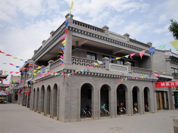 中华回乡第一街位于永宁县纳家户北侧。该项目以纳家户清真大寺为中心扩展门前广场,以广场为中心向北,直北长380米,东西宽107米,占地面积93.78亩,建筑面积1.6万平方米,建成商铺177套。所有建筑遵循当地回族的建筑风格,采用青砖砌筑,尤其在细节处理上用符号、色调与装饰来表现回族建筑的精髓。雕梁画栋,飞檐四出,并且在墙壁、牌坊、檐口、山墙等处运用了大量砖雕、伊斯兰花饰等将伊斯兰文化艺术与中国传统建筑风格有机的结合在一起,为景区增加了浓郁的历史文化氛围。该街道由北向南依次分为土特产区、民俗文化区、旅游纪念区、餐饮区、配套商业区五大功能区。