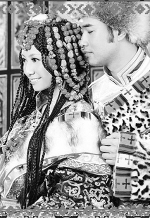 藏式婚礼的仪式上,婚礼双方家庭首先选取结婚地点方圆几里内的建筑物,高高挂起经幡,待迎风招展时迎来上天的祝福。