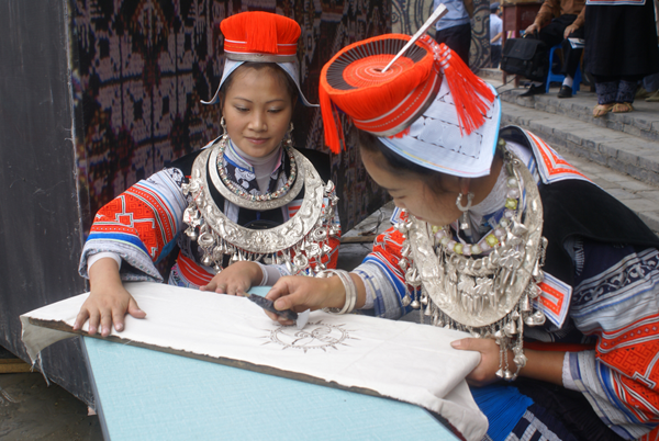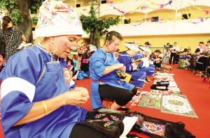 经过层层选拔出的100名绣娘在此飞针走线,同秀技艺,展现了少数民族民间文化独特的艺术魅力。