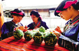 黔东南苗族侗族自治州的苗族蜡染非常有名。但是蜡染由于手工制作耗时的原因,一度出现成本高、市场销售低迷...