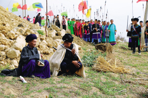 仪式当天,各家各户的父母给自家的孩子穿上新装;孩子们则削木为刀,编草为穗,插玉米芯做矛头,剥玉米皮当缨枪,用竹篮背着用麻籽和燕麦炒制的干粮,从四面八方赶来,聚集在一起。