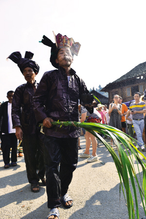 2014年7月18日,贵州省黎平县双江镇黄岗侗寨侗族同胞举行了一年一度的“喊天节”。“喊天节”又称“祭天节”或“求雨节”,每年农历六月十五日举行。当天,侗族同胞开展了祭萨、 祭天、捕鱼比赛、鼓楼对歌等活动。 王炳真摄影报道