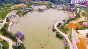 俯瞰侗寨青山绿水间的皮划艇赛事。 胡庆才 杨代富 杨秀银 摄影
