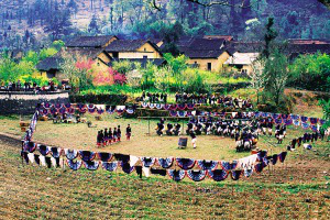 聚在一起的白裤瑶男女们等待着晾晒盛会的开始