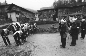 “受戒者”们在村口迎接师傅