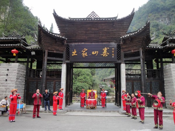 图为湖北宜昌点军区车溪土家山寨迎宾场面 老铁供图