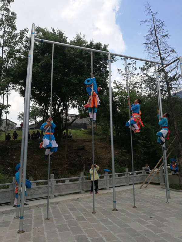 傈僳族爬杆 2017年5月方征摄于腾冲市猴桥乡黑泥溏村