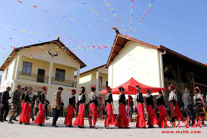 在简单的入住仪式上,到场的梁河县领导为拱母新村村民发放了象征着开启新生活的“钥匙”。梁河县信用联社还向拱母新村捐赠5000元。村民与周边的各族群众载歌载舞,表达着搬入新居的欢乐。