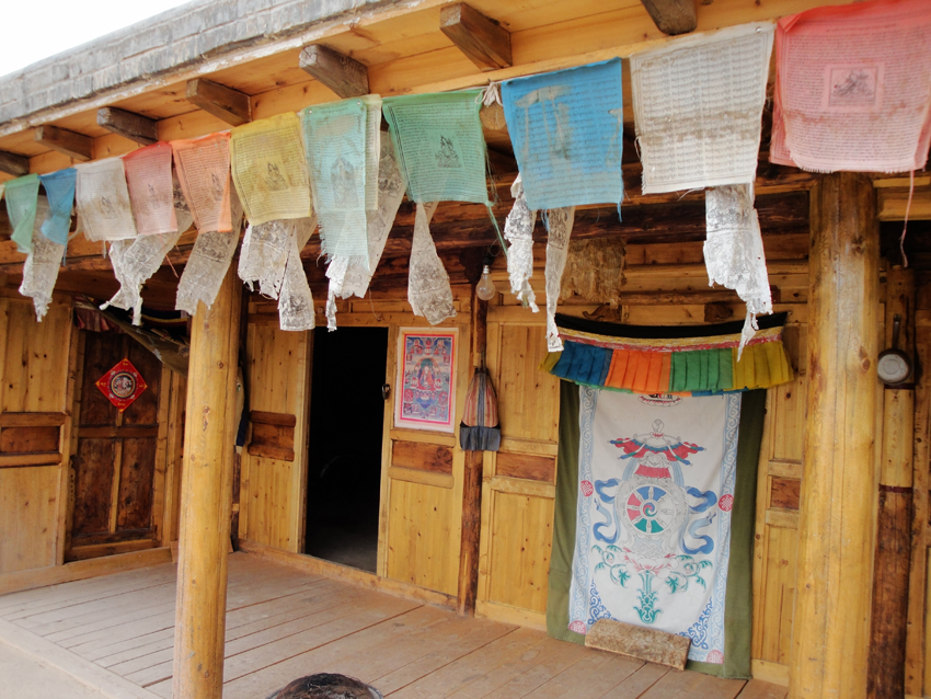 主房多用来供神,中堂摆一堆大红面柜,上置吉祥箭、佛龛或其他供器。厨房锅灶或案板上方为灶神之位。屋内陈设家居有衣柜、货架、面柜、沙炕、木板炕、打泥炕。有一种俗称“锅台连炕”的打泥炕,土语称“秃光”,是一种与锅台连在一起的土炕。土族人把厨房设在东房,锅台筑在居中的一间里,紧挨锅台(忌坐西向东)后面的一间房里盘上打泥炕。在灶与炕之间砌一堵矮土墙,叫“拦炕”,烟道经过炕下后才能通往烟囱。平时做饭、烧水时,余热可使土炕变得暖烘烘的,可谓一举两得。平时,炕上不铺毡,上炕不脱鞋,一家老小都坐在炕上吃饭、休息。如果有客人来,则要铺上毡让客人坐在上方。