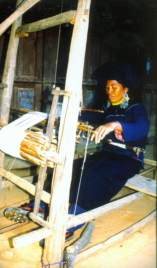 (2)纺织。布朗族妇女善于纺织,多在闲暇时间进行。纺织原料有棉花、苎麻和葛线麻等数种,以纺织棉布为主。这些布用来缝制上衣、筒裙、背带、布袋、裹脚布等。纺织品种有斜纹布、平布和彩锦。布的质地厚实耐穿,深受本族人喜爱。有的地区,人们多半使用水平织机,纺织技术更进了一步。近十年来,由于价廉物美、品种齐全的化纤纺织品大量销售,传统的纺织技术受到了冲击,一些布朗族妇女已经不纺纱织布。