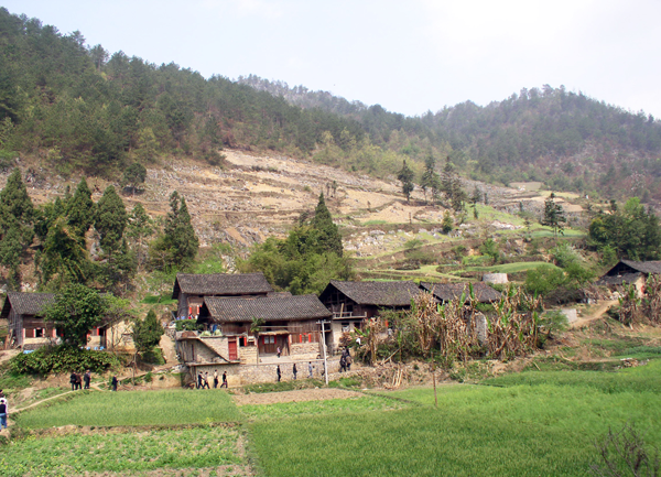毛南族聚居于偏僻山区,20世纪以前,经济展缓慢,居民贫富差异较大,其房屋建筑主要有两种形式:一种是历代传承下来的木结构干栏式;另一种是受汉式影响而发展起来的硬山搁檩地民居。乡村群众多为简陋的木结构干栏式茅房。到20世纪,随着经济的逐步展,传统的木结构干栏式茅房逐步被石块、土砖或夯土、木混合结构的干栏石屋所取代。在交通较为便利的邻近集镇的富有人家则流行石料、土砖或夯土筑成的硬山搁檀地居式瓦房,四面墙体均用料石、土砖筑成,顶上的桁条上钉以瓦桷板条(俗称栓皮),覆盖以鱼鳞瓦片。有的还用青砖在原干栏的两边砌成厚实的封山式山墙,边脊两端塑有翘起的凤形图案,显得精致美观;山墙中间开设两扇可供室内通风和采光的直棂式大窗。每一家的前面都有一个小庭院,院门开于一侧,面向石板巷道。在主房旁侧或前檐外另建一间作为厨房或牛栏,使整体形成一个独立的居住小单元。如今,简陋的木结构干栏式房屋已绝迹,乡村的钢筋混凝土结构楼房逐渐增多。