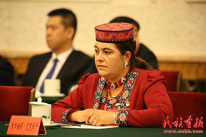 十九大代表、新疆塔什库尔干塔吉克自治县塔什库尔干乡小学党支部书记米日姑丽·艾克米汗(塔吉克族)(滕俊摄影)