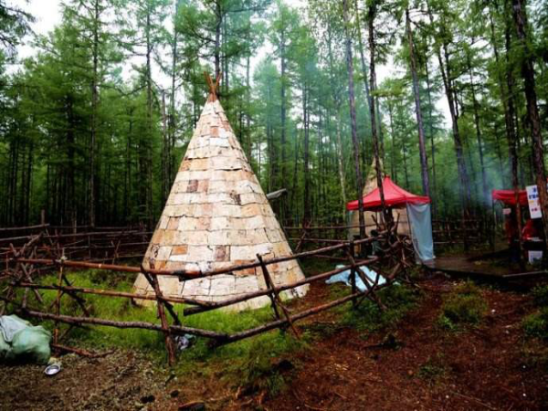 撮罗子的选址,是在地势较高、阳光能照射到而且水和柴草就近可取的平坦之处。其盖造方法,是用三五根约碗口粗细上有枝杈的木杆,相互交合搭成上聚下开的骨架,然后再用30根左右木杆搭在骨架之间捆绑固定,在南面(或东面)留出门,即基本成型。木杆搭起的只是“屋架”,外面还要覆盖才能遮风挡雨。按照季节的不同,分别用桦树皮、草帘子和犴、狍等兽皮,做成自上而下一层压一层的围子,绑在木杆上,门帘则夏用草或树条编,冬用狍皮做成。