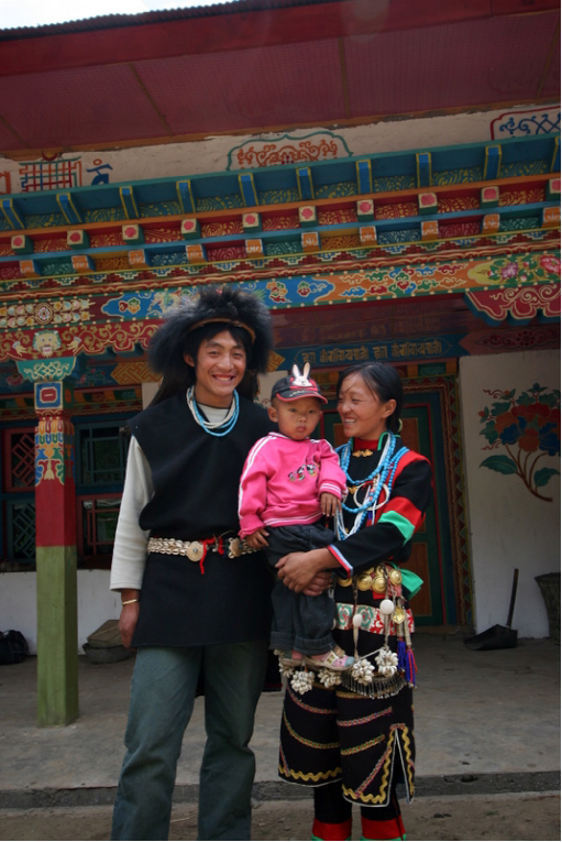 随着氏族制的解体,女子的社会地位逐渐下降,男子看重女子的贞操,因此公房因不合时宜而慢慢消失,由长房取代。“长房”崩尼语为“南塔”,与邦戈的区别在于其内部有隔墙,在每个居室里设有火塘,有的一个家族住在一座长房内,形成一个大家庭。珞巴族大家庭形成的原因一般是一夫多妻或奴隶较多,妻子最多的有十多个,多妻的主要原因是富有的男子可以随意买卖女子或者是转房。这种家庭的居住形式主要有各妻子不分居和不分居两种,在丈夫的主持下共同生产生活。就珞巴族家庭形态的总体来看,仍以一夫一妻制的小家庭为主,因此存在长屋的同时,每个部落都建有供一夫一妻的个体家庭居住的独立小房,或为干栏式,或为地居式。