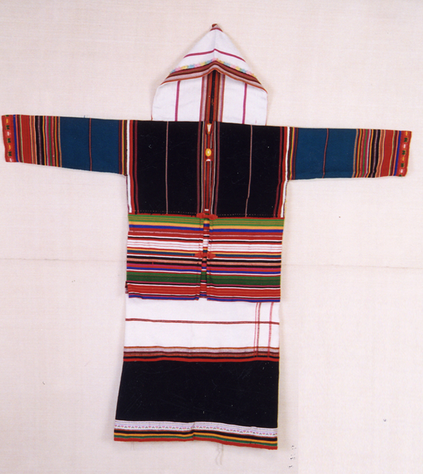 基诺族竖线花纹的衣料是独具民族特色的基诺族织锦“砍刀布”。