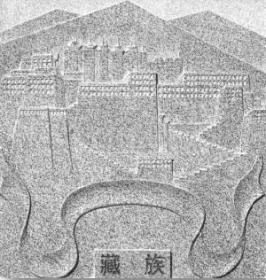 藏族的标志性建筑是布达拉宫。布达拉宫相传是七世纪时吐蕃赞普松赞干布为迎娶唐文成公主开始兴建的。松赞干布建立的吐蕃王朝灭亡之后,古老的宫堡大部分毁于战火。直至十七世纪,五世达赖被清朝政府正式封为西藏地方政教首领后,才开始重建布达拉宫。以后历代达赖又相继进行扩建,逐步形成了布达拉宫今日之规模。布达拉宫外观13层,高110米,由东部的白宫(达赖喇嘛居住的地方 ),中部的红宫(佛殿及历代达赖喇嘛灵塔殿)以及与之相配合的各种建筑所组成。是世界上海拔最高,集宫殿、城堡和寺院于一体的宏伟建筑,也是西藏最庞大、最完整的古代宫堡建筑群。布达拉宫依山垒砌,群楼重叠,殿宇嵯峨,气势雄伟,是藏式古建筑的杰出代表,也是中华民族古建筑的精华之作。布达拉宫浓缩了藏族传统文化的精华,是藏民族的心灵圣地和精神品格的象征。
