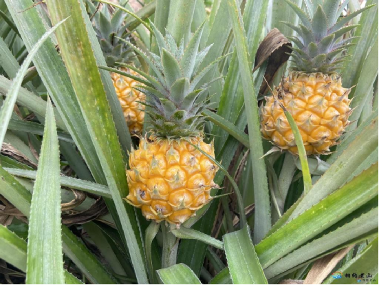 “我现在再砍去一些菠萝的叶子,防止采收时割伤,同时让太阳晒到菠萝,让菠萝更好吃。”菠萝地里,金黄的菠萝隐藏在绿色的“皇冠”和叶片之下,马停红正在修剪菠萝叶。