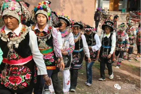 散居于哀牢山上段的弥渡牛街彝族乡彝族分“迷撒支”和“罗罗泼支”两个支系,均为来自巍山、南涧的南诏后裔。“迷撒支”主要分布于木掌、荣华两个村委会,而“罗罗泼支”各村委会均有零星分布。彝族服饰,如果按地域来划分,可以分为凉山、乌蒙、红河三大类,牛街彝族服饰属于“乌蒙”类。
