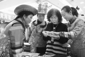 学员们在认真探讨“青绣”技艺。 马天琼摄