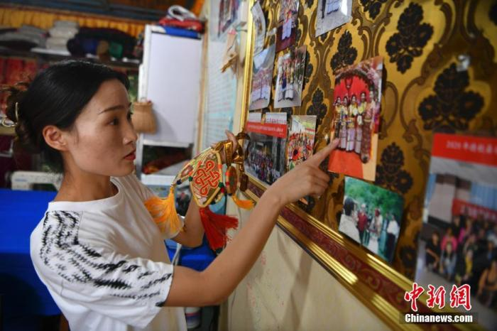 7月22日,提美的女儿边宗向记者介绍她制作的配饰。 中新社记者 刘冉阳 摄