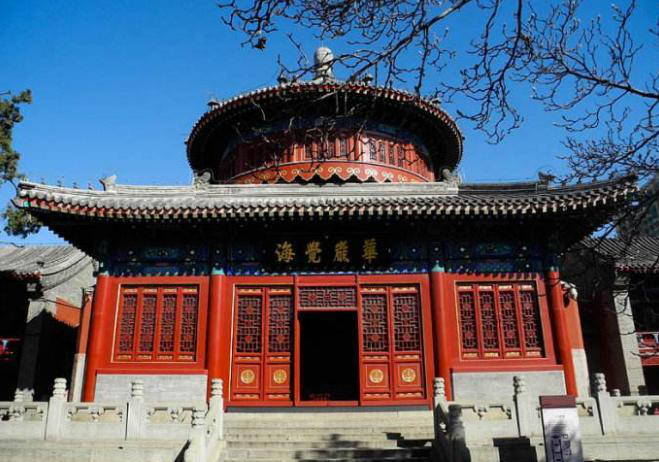 潭柘寺楞严坛(20世纪50年代拆除后构建封存)位于潭柘寺西路,建于明代。殿为木构建筑,上层为圆攒尖宝顶,下层为六角形,台基为六角形石质坛台。